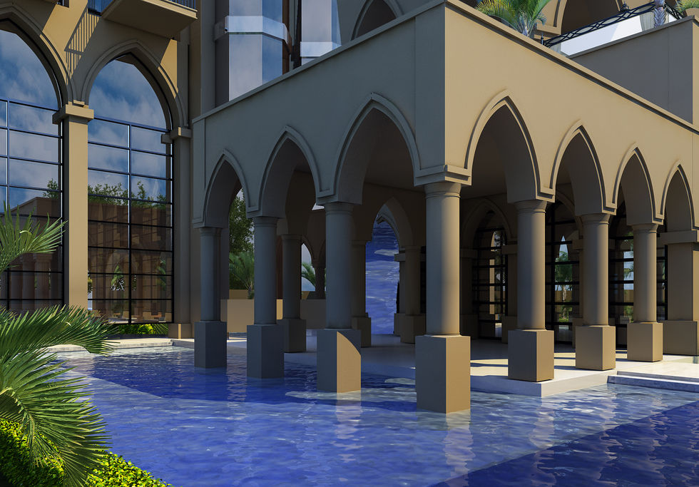 Spa: A tranquil escape with interiors featuring arches, ambient lighting, and luxurious finishes.